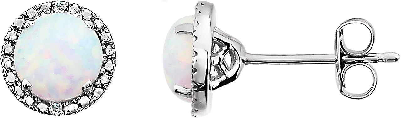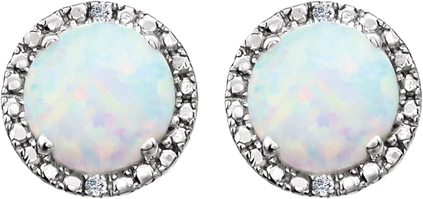 Description: Created Opal And .01 Ctw Diamond Earrings