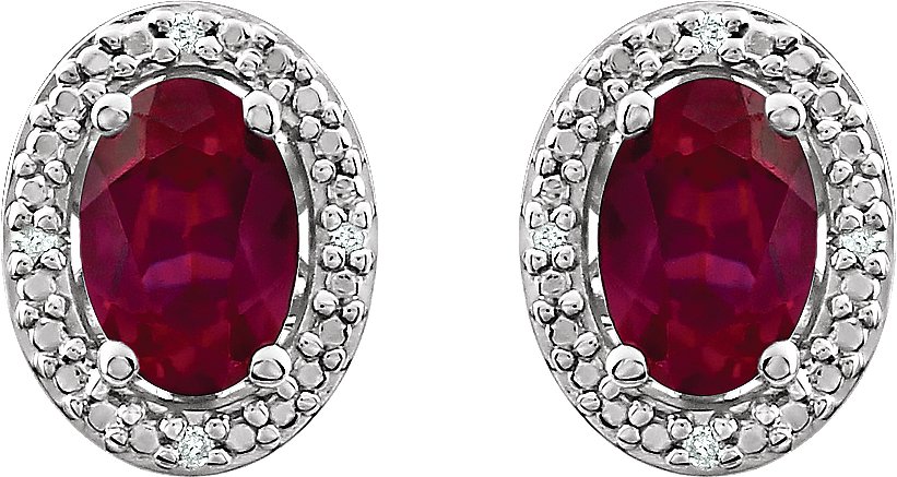 Sterling Silver Created Ruby & .025 CTW Diamond Earrings