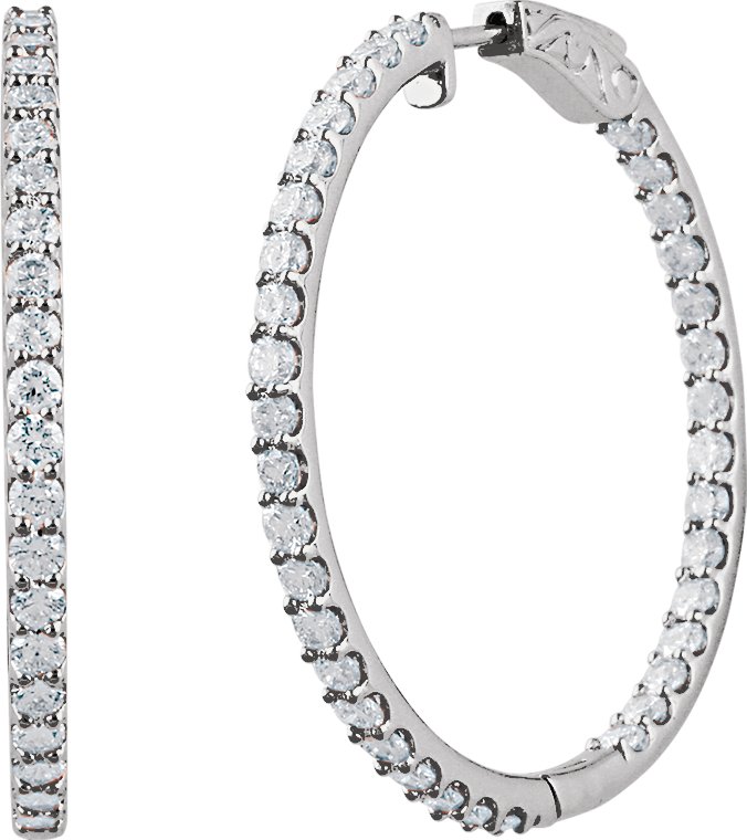 Sterling Silver Cubic Zirconia Inside Outside 41.5 mm Hoop Earrings