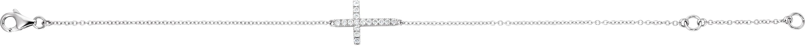 Sterling Silver Cubic Zirconia Sideways Cross 8" Bracelet