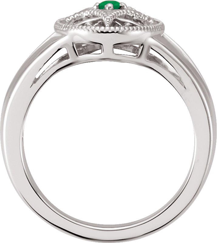 Sterling Silver Emerald Granulated Filigree Ring Size 5