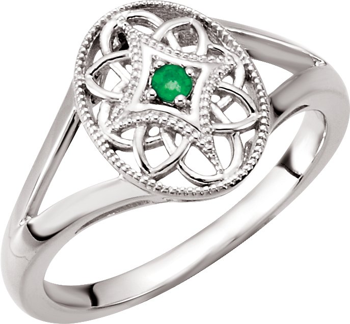 Sterling Silver Emerald Granulated Filigree Ring Size 6