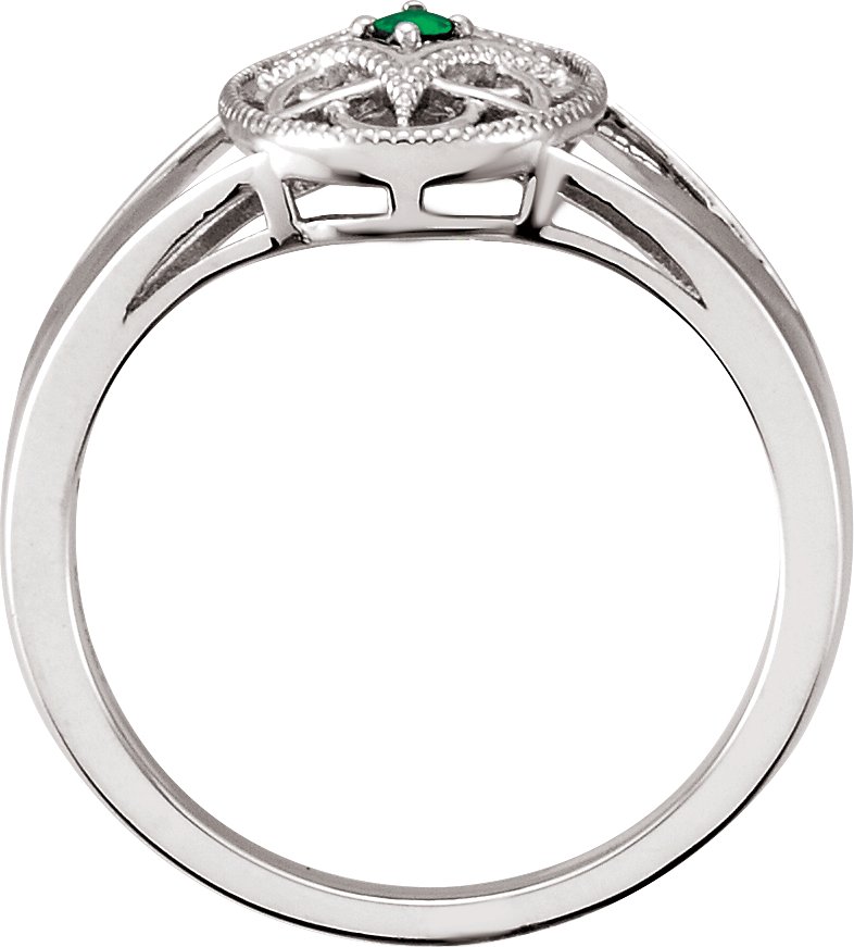 Sterling Silver Emerald Granulated Filigree Ring Size 8