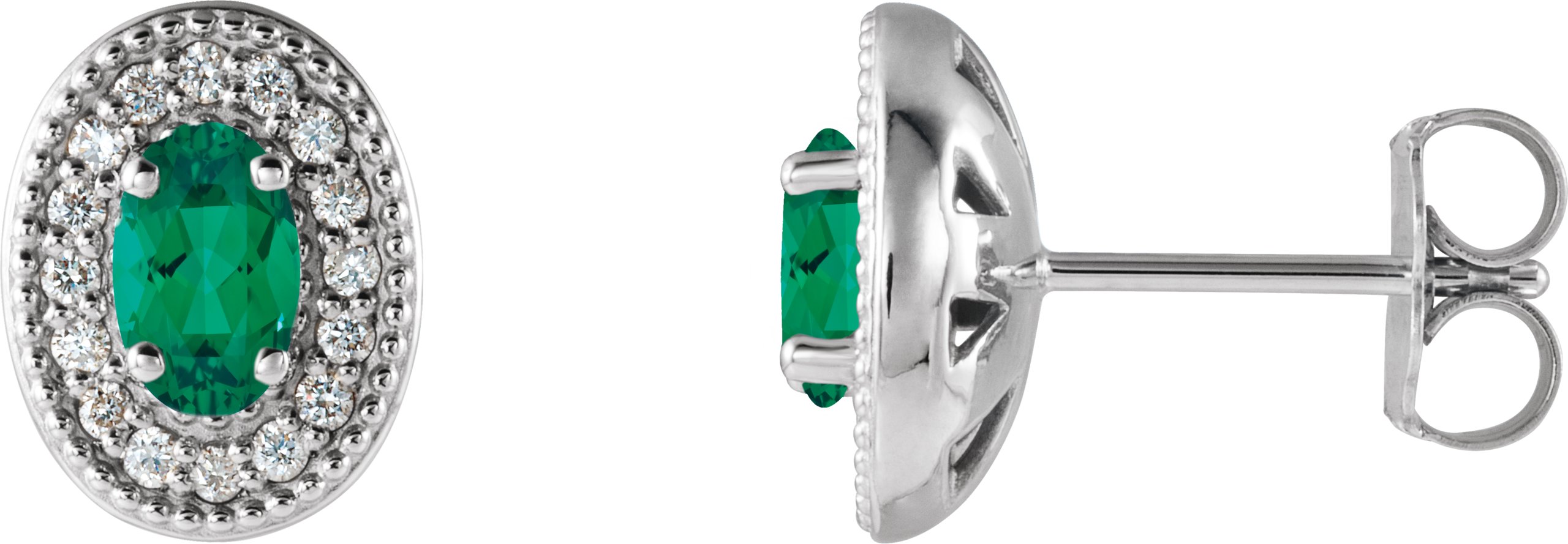 Description: Genuine Emerald And 1/8 Ctw Diamond Earrings With Backs
