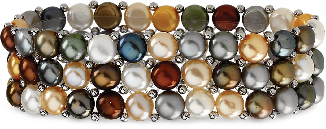 Sterling Silver Freshwater Cultured Multi Colored Pearl 3 Row Stretch Bracelet