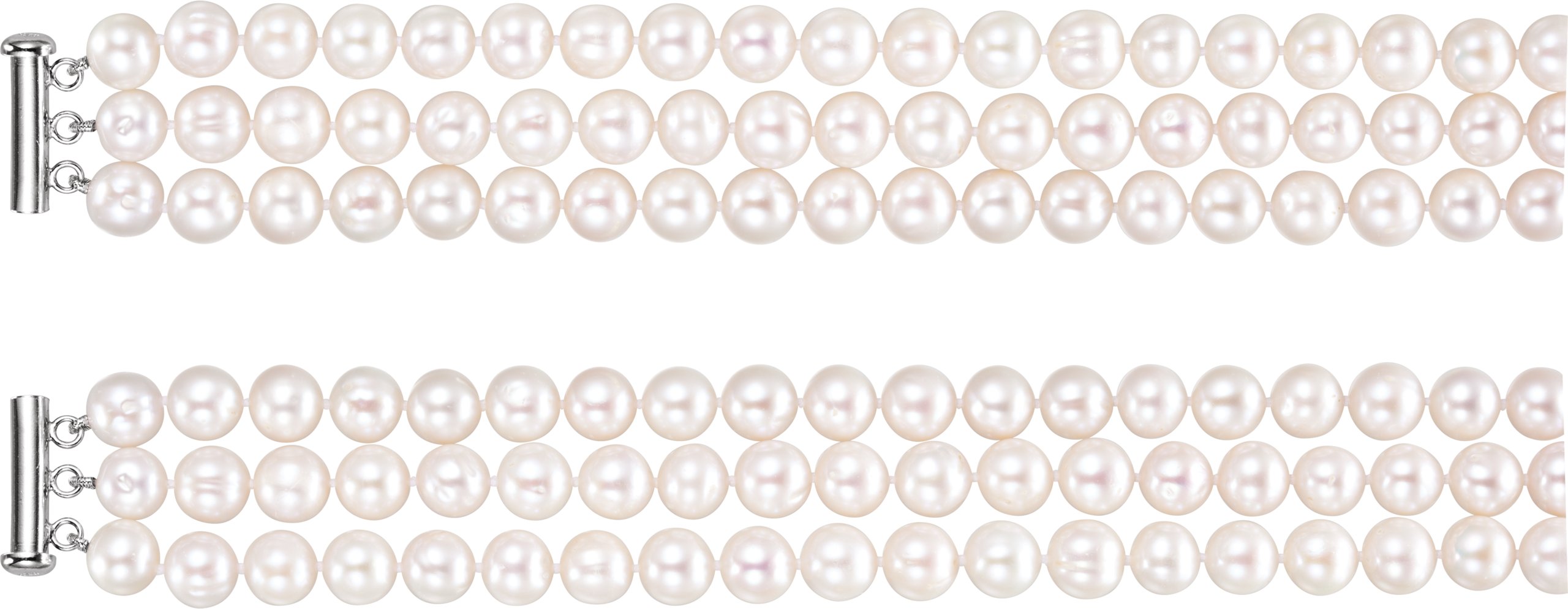 Sterling Silver Freshwater Cultured Pearl 3 Row 22 inch Necklace