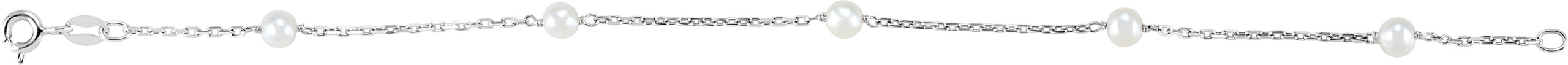 Description: White Freshwater Cultured Pearl Station Bracelet