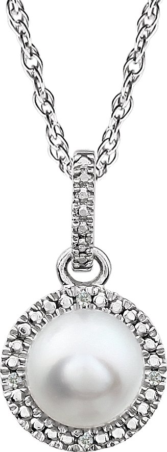 Sterling Silver Freshwater Cultured Pearl & .01 CTW Diamond 18 inch Necklace
