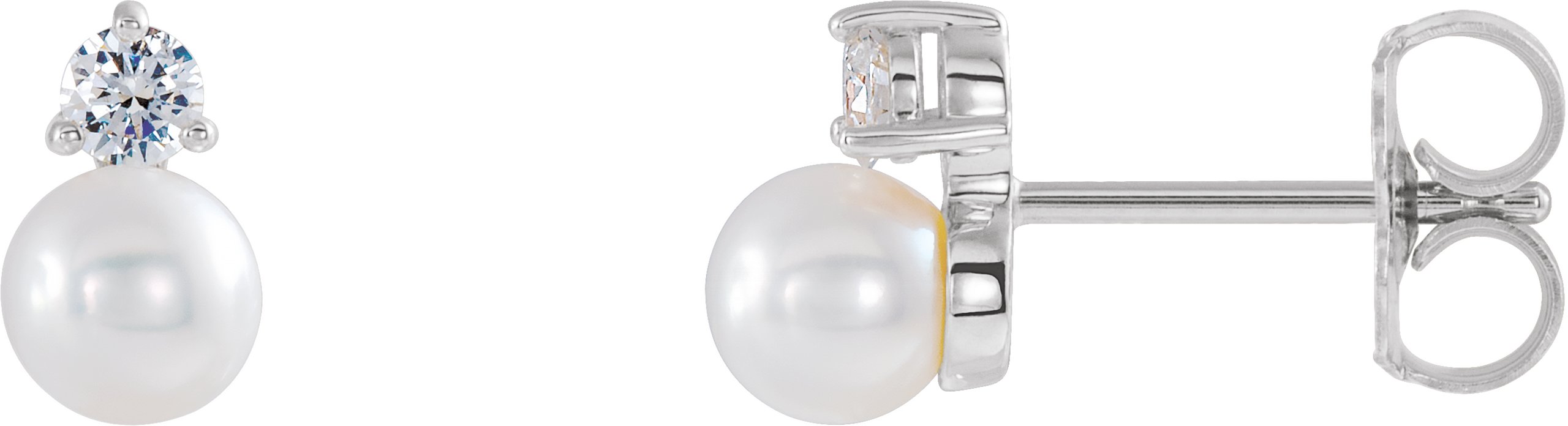 Description: White Freshwater Pearl And 1/5 Ctw Diamond Earrings