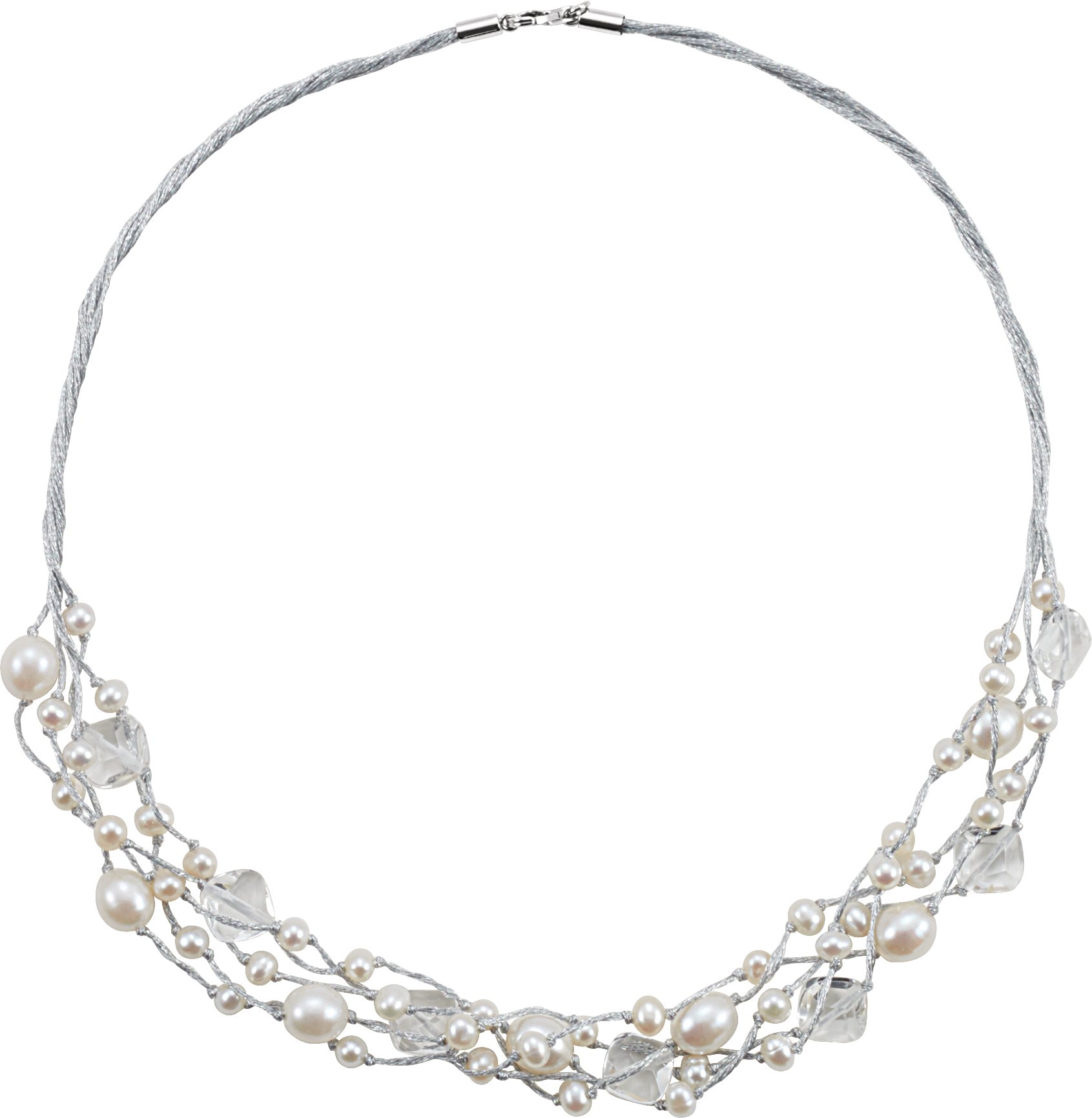 Sterling Silver Freshwater Cultured Pearl & Crystal 19.5" Necklace Ref. 3074020