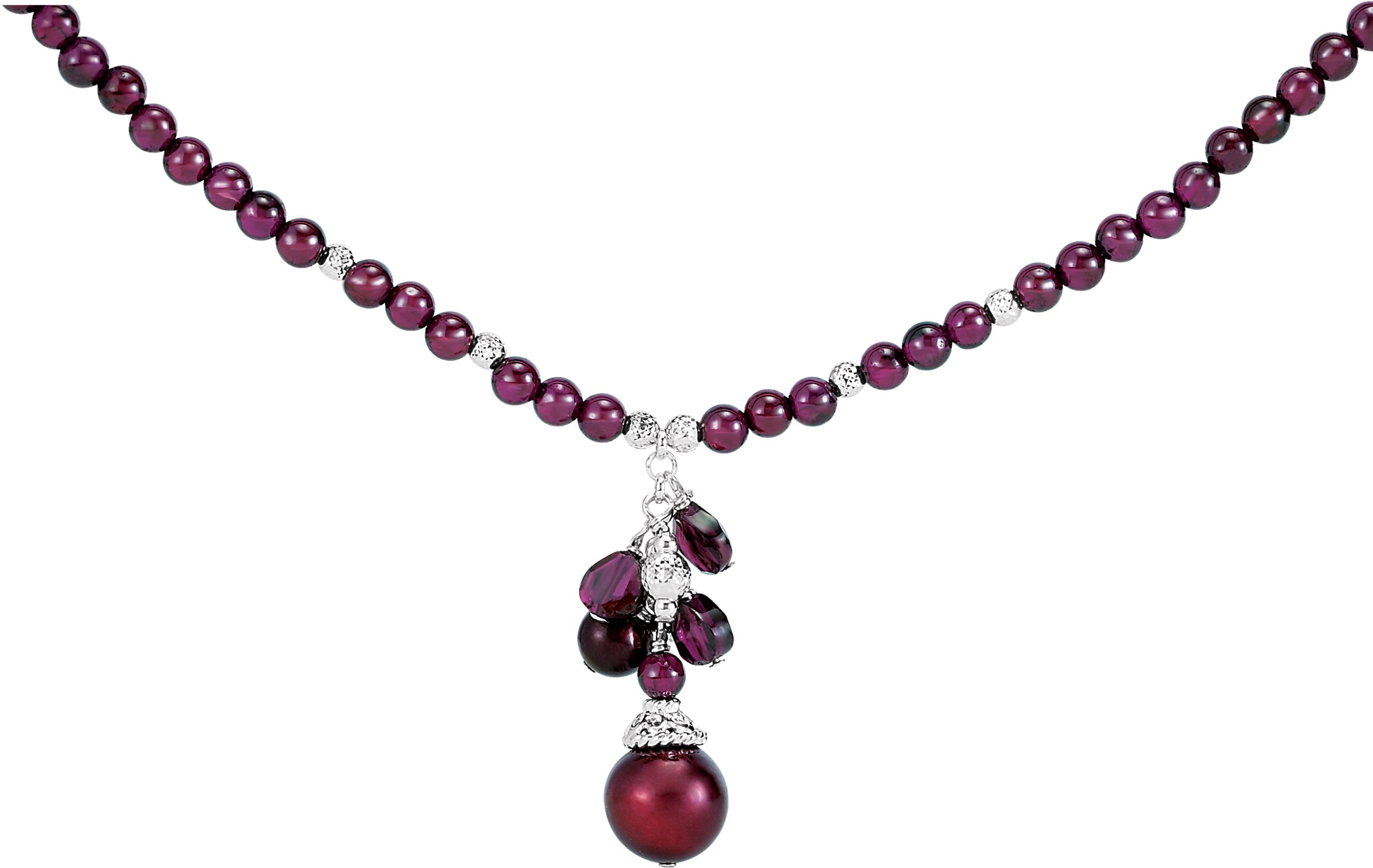 Sterling Silver Freshwater Cultured Pearl & Rhodolite Garnet 16 18 inch Necklace