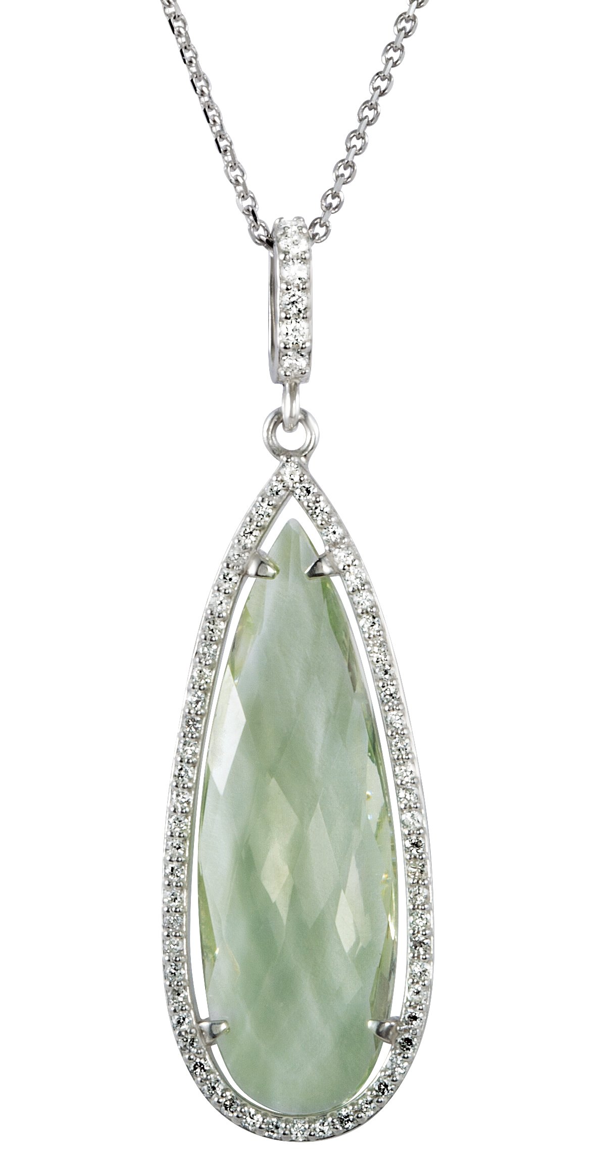 Description: Green Quartz And 1/6CTW Diamond Necklace
