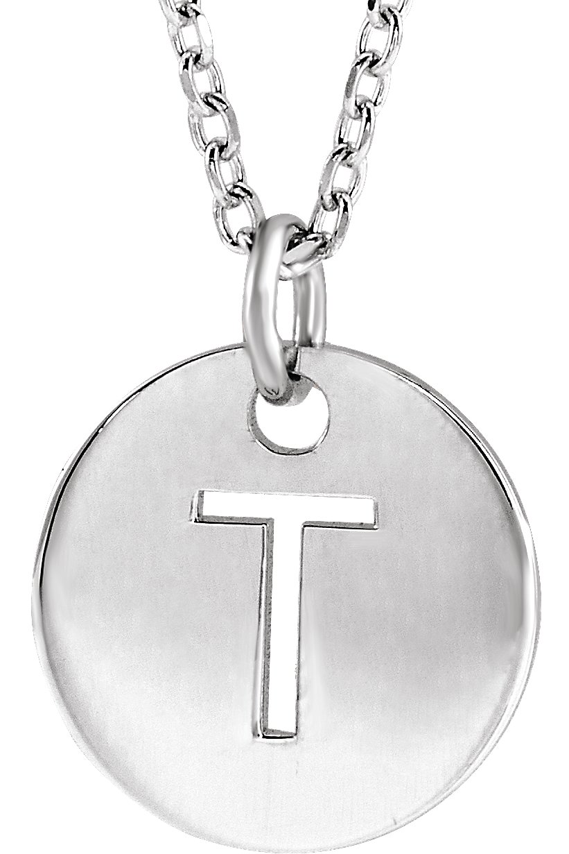 Sterling Silver Initial T 10 mm Disc 16 18" Necklace Ref. 16680434