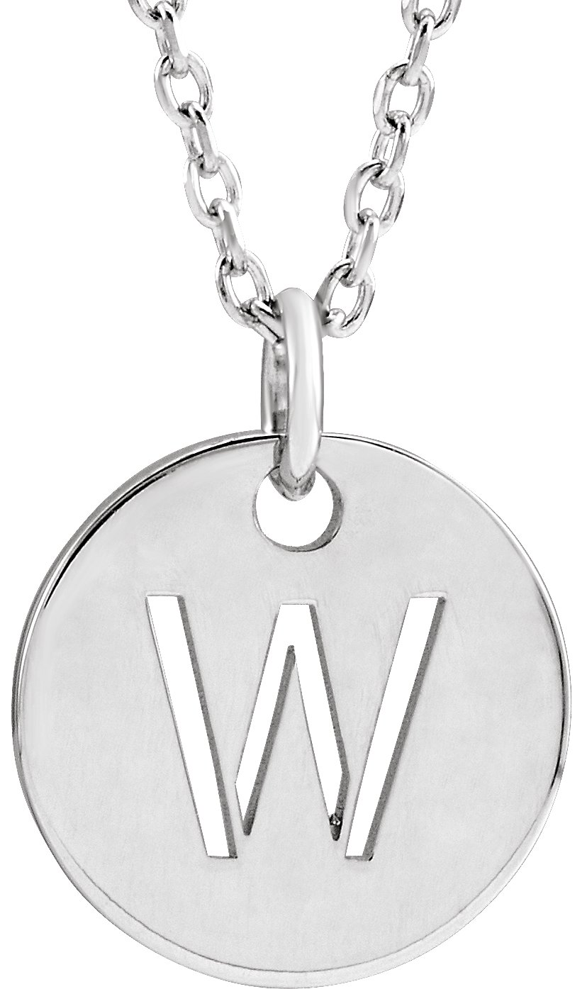 Sterling Silver Initial W 10 mm Disc 16 18" Necklace Ref. 16680446