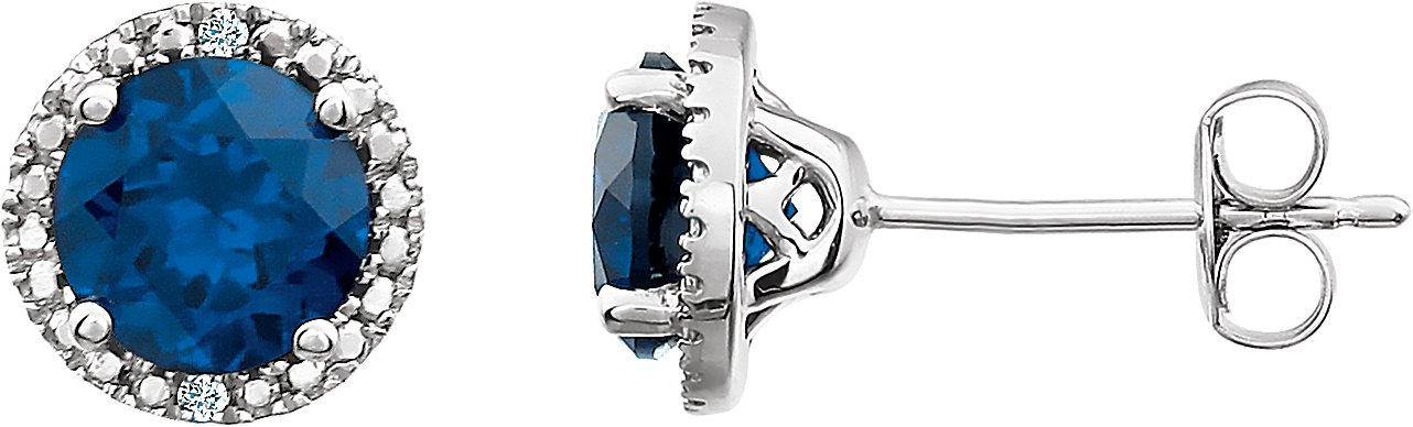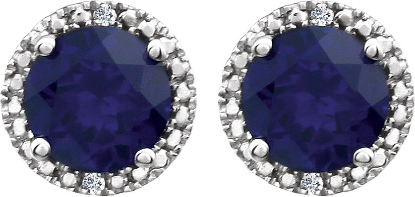 Description: Created Blue Sapphire And .01 Ctw Diamond Earrings