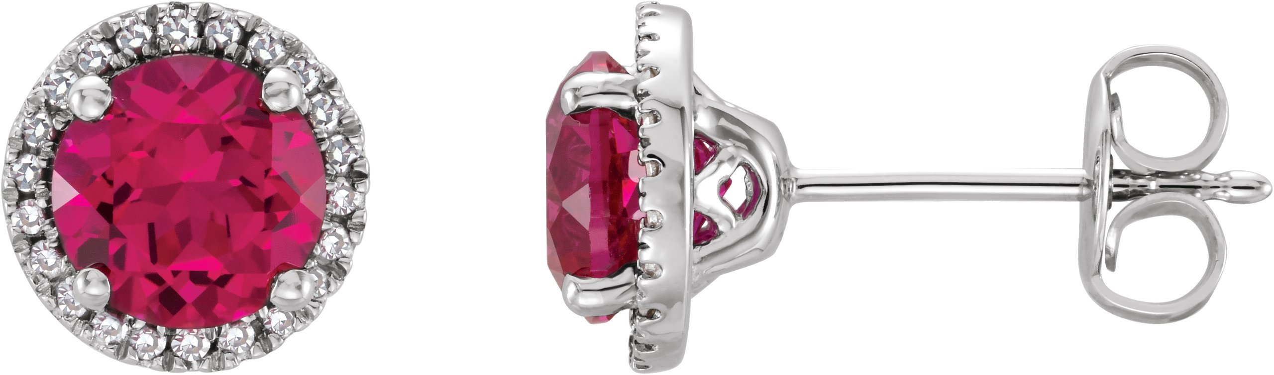 Description: Created Ruby And .01 Ctw Diamond Earrings