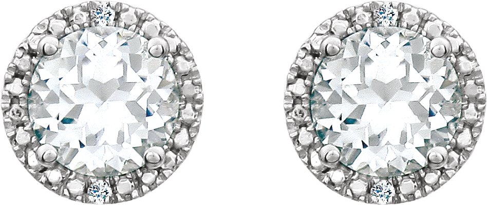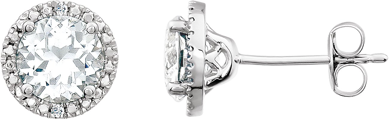 Description: Created White Sapphire And .01 Ctw Diamond Earrings