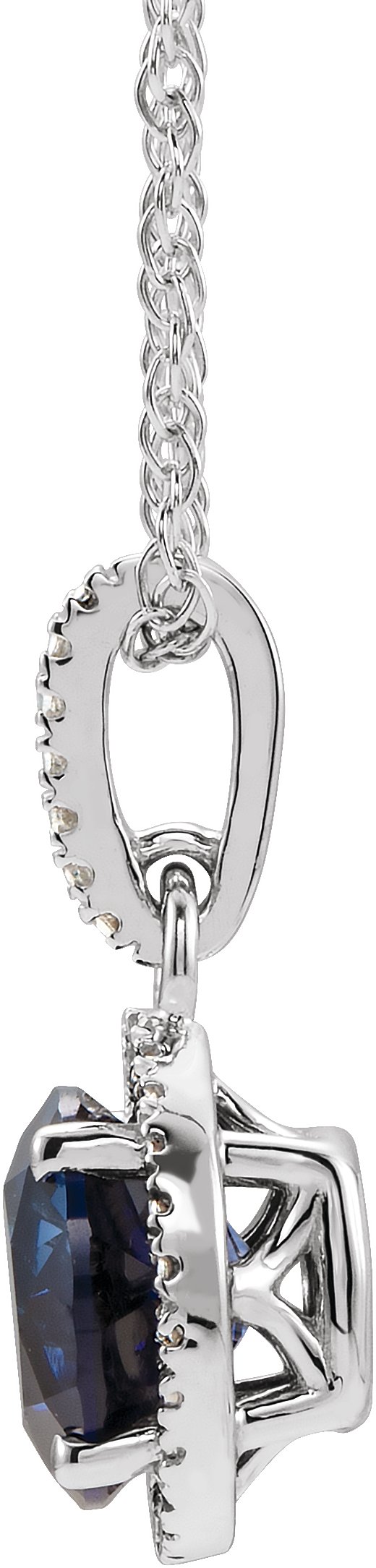 Sterling Silver Lab Grown Blue Sapphire & .01 CTW Diamond 18 inch Necklace
