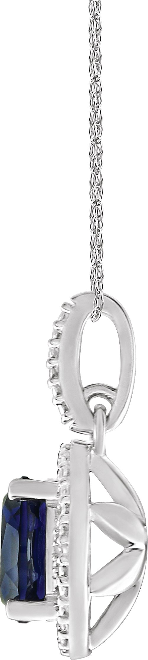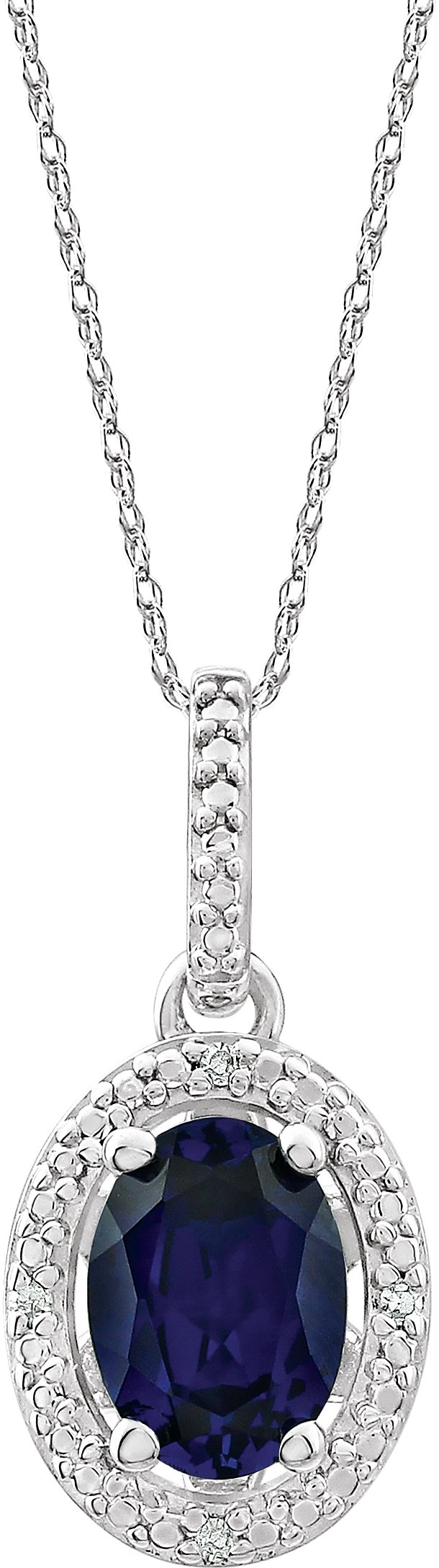 Sterling Silver Lab Grown Blue Sapphire & .01 CTW Diamond 18 inch Necklace