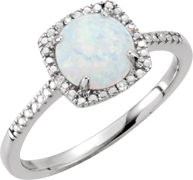 Description: Opal And .01 Ctw Diamond Birthstone Ring