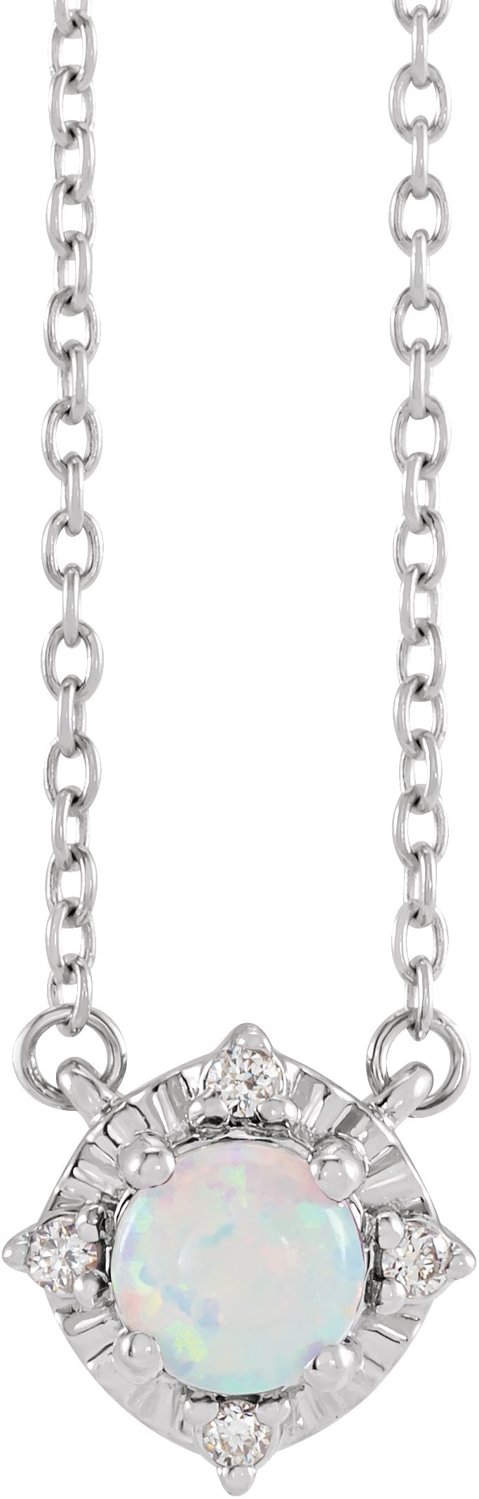 Description: Lab-Grown Opal And .04 CTW Natural Diamond Necklace