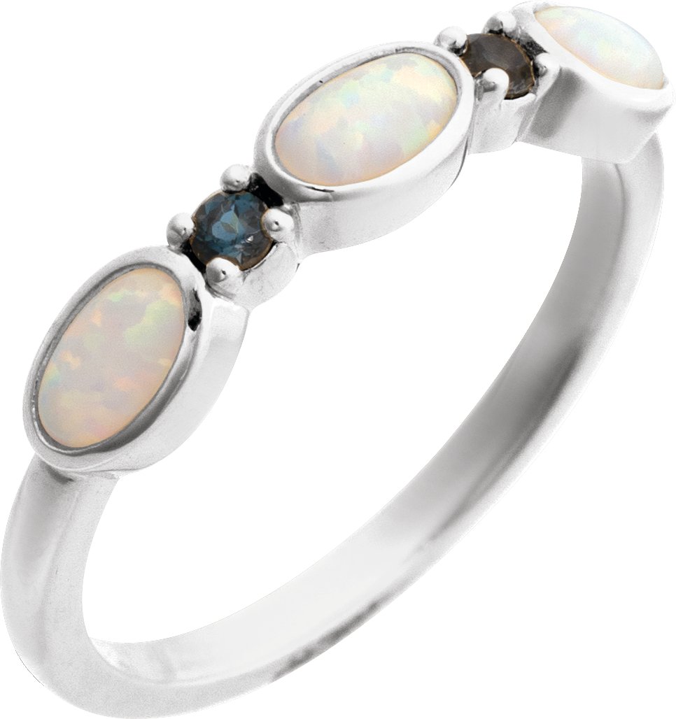 Sterling Silver Lab-Grown White Opal & Natural London Blue Topaz Stackable Ring