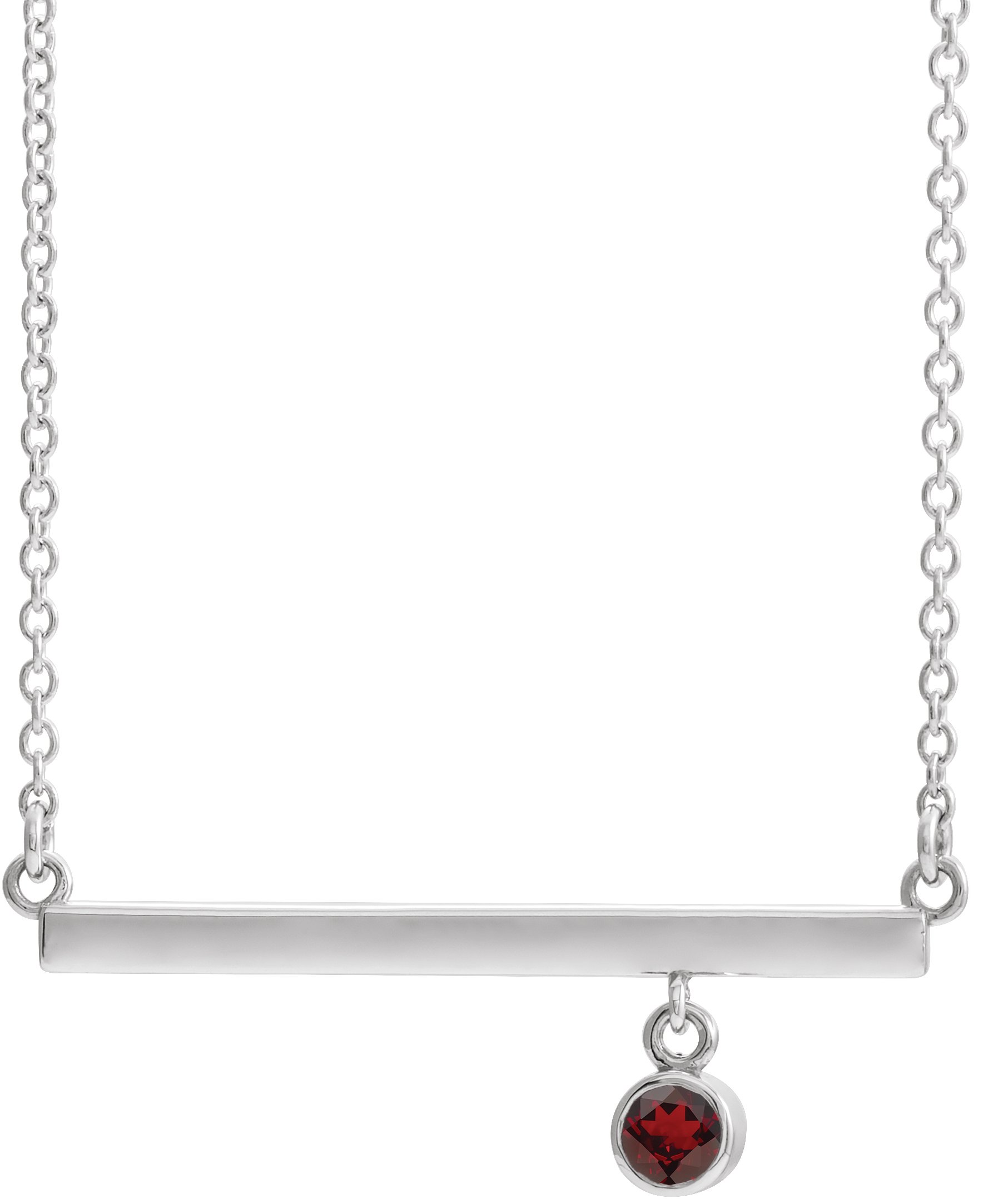 Description: Genuine Garnet 18 In Bar Necklace