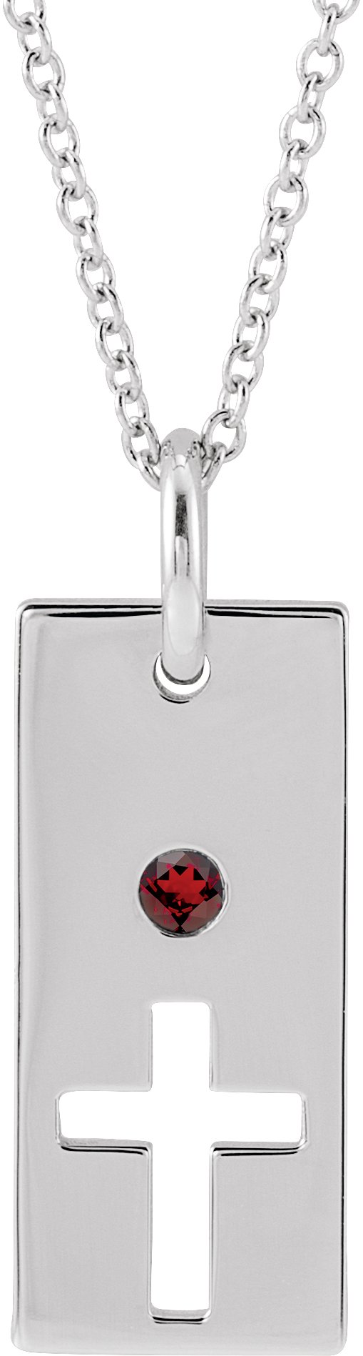 Sterling Silver Mozambique Garnet Cross Bar 16 18" Necklace Ref. 17077718