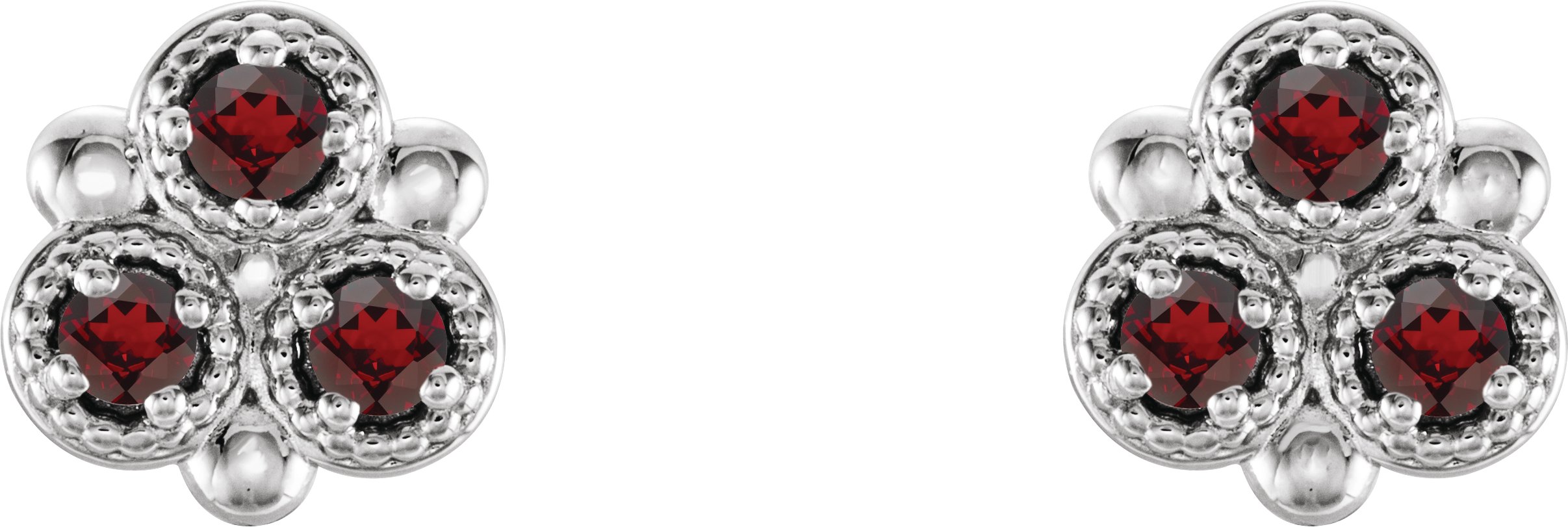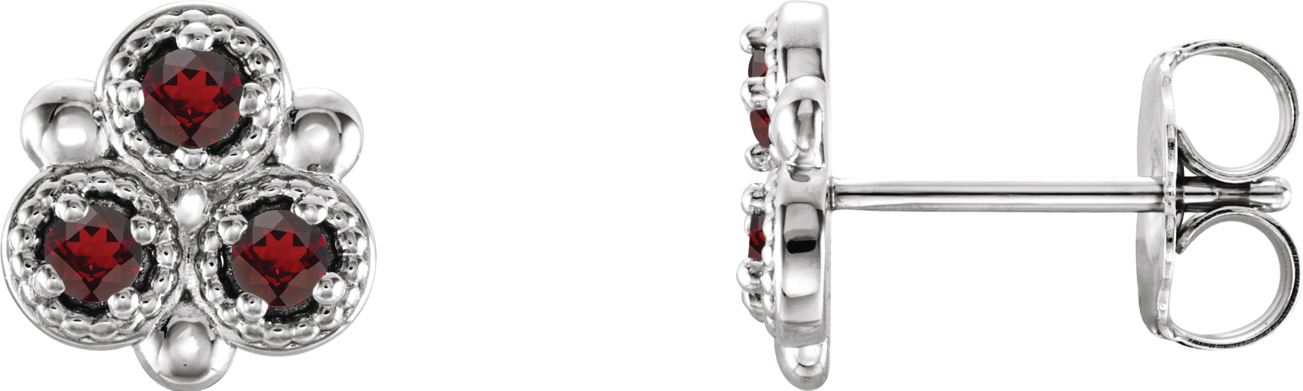 Sterling Silver Mozambique Garnet Three Stone Earrings