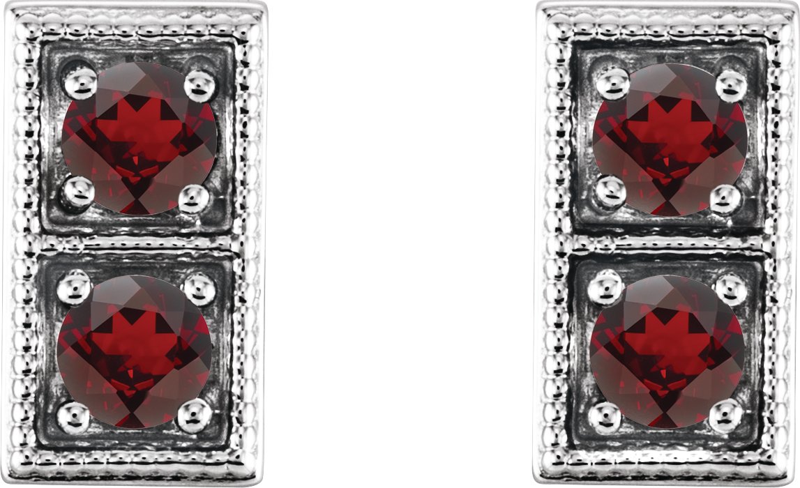 Sterling Silver Mozambique Garnet Two Stone Earrings