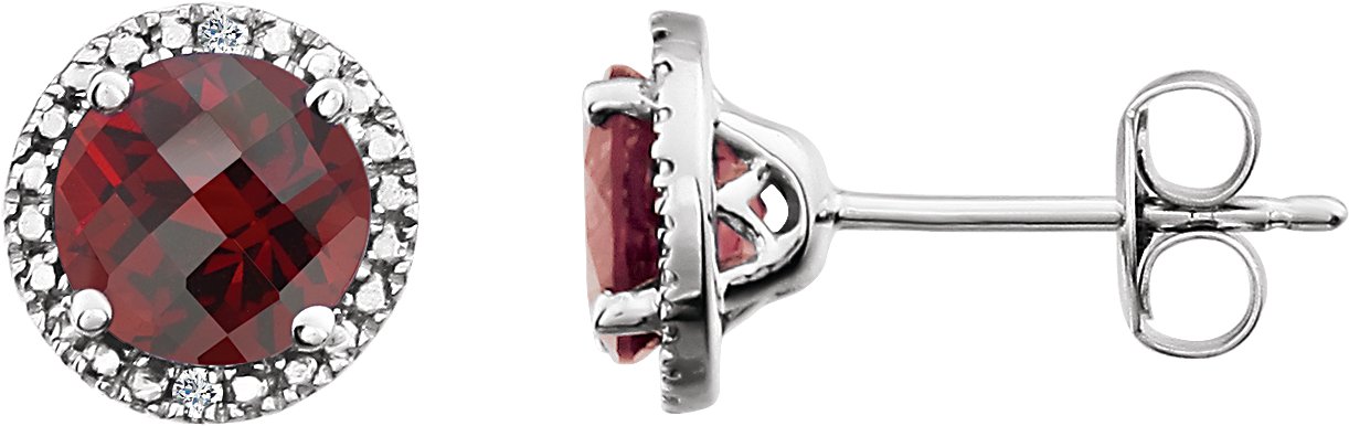 Description: Genuine Mozambique Garnet And .01 Ctw Diamond Earrings
