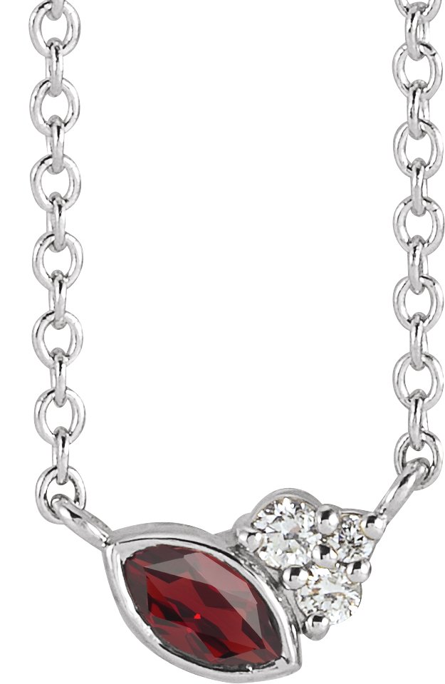 Sterling Silver Mozambique Garnet & .03 CTW Diamond 18 inch Necklace