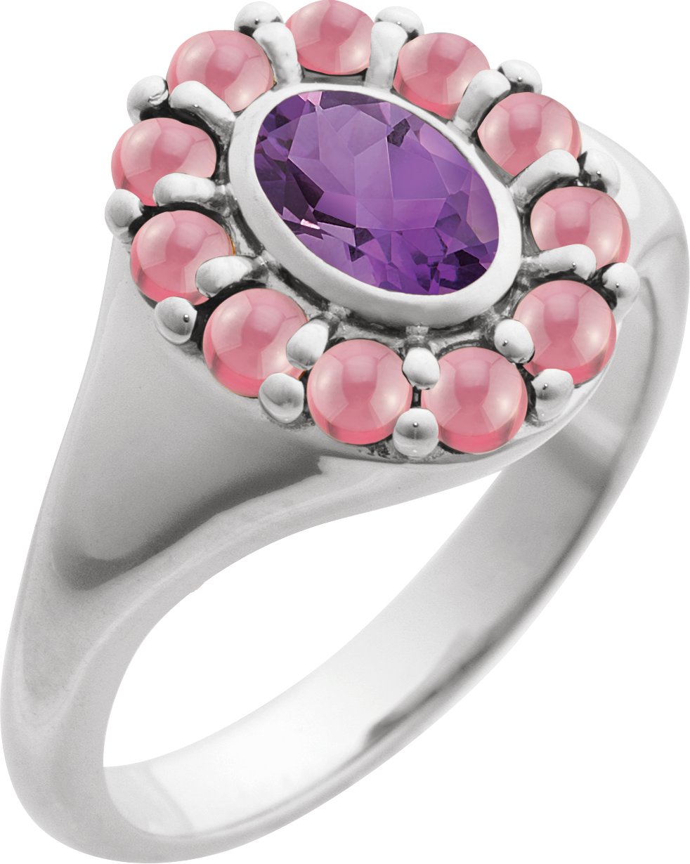 Sterling Silver Natural Amethyst & Natural Rhodolite Garnet Halo-Style Ring