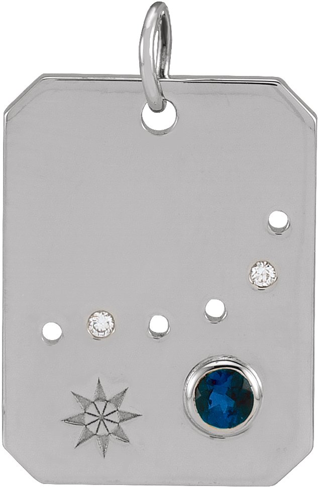 Description: Blue Sapphire And Natural Diamond Accented Zodiac Constellation Pendant