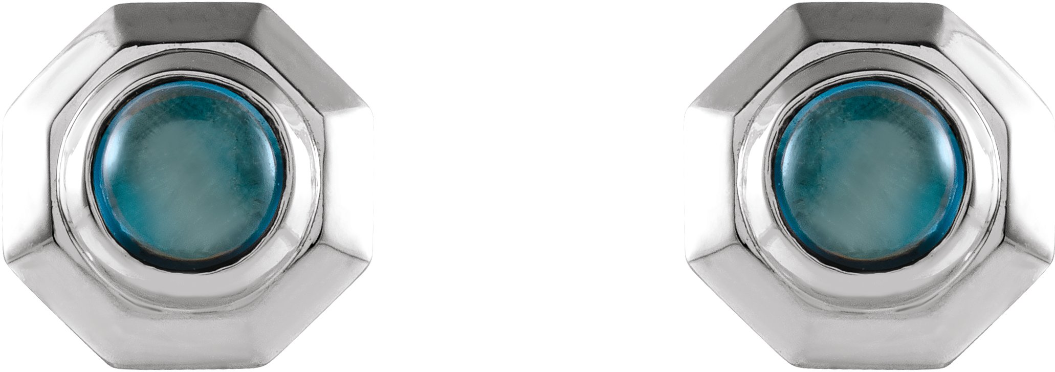 Sterling Silver Natural London Blue Topaz Geometric Cabochon Earrings Ref 17399491