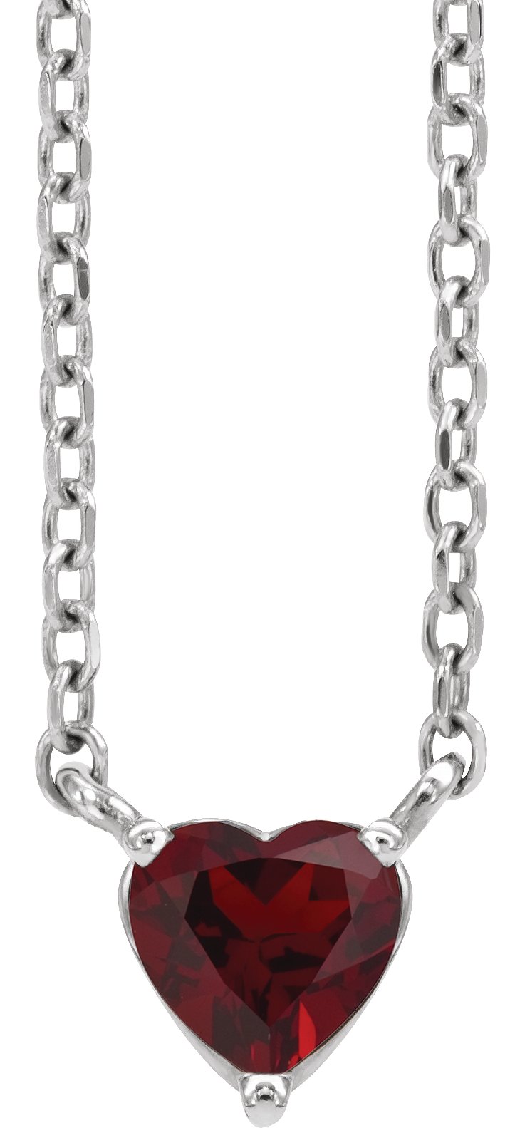 Sterling Silver Natural Mozambique Garnet Heart 16 to 18 inch Necklace Ref 19139402