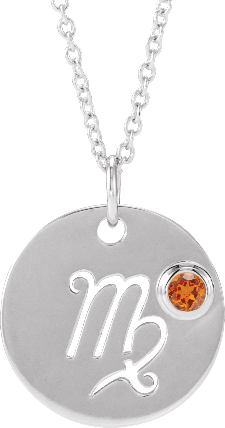 Sterling Silver Natural Orange Garnet Virgo Zodiac 16 to 18 inch Necklace Ref 17886626
