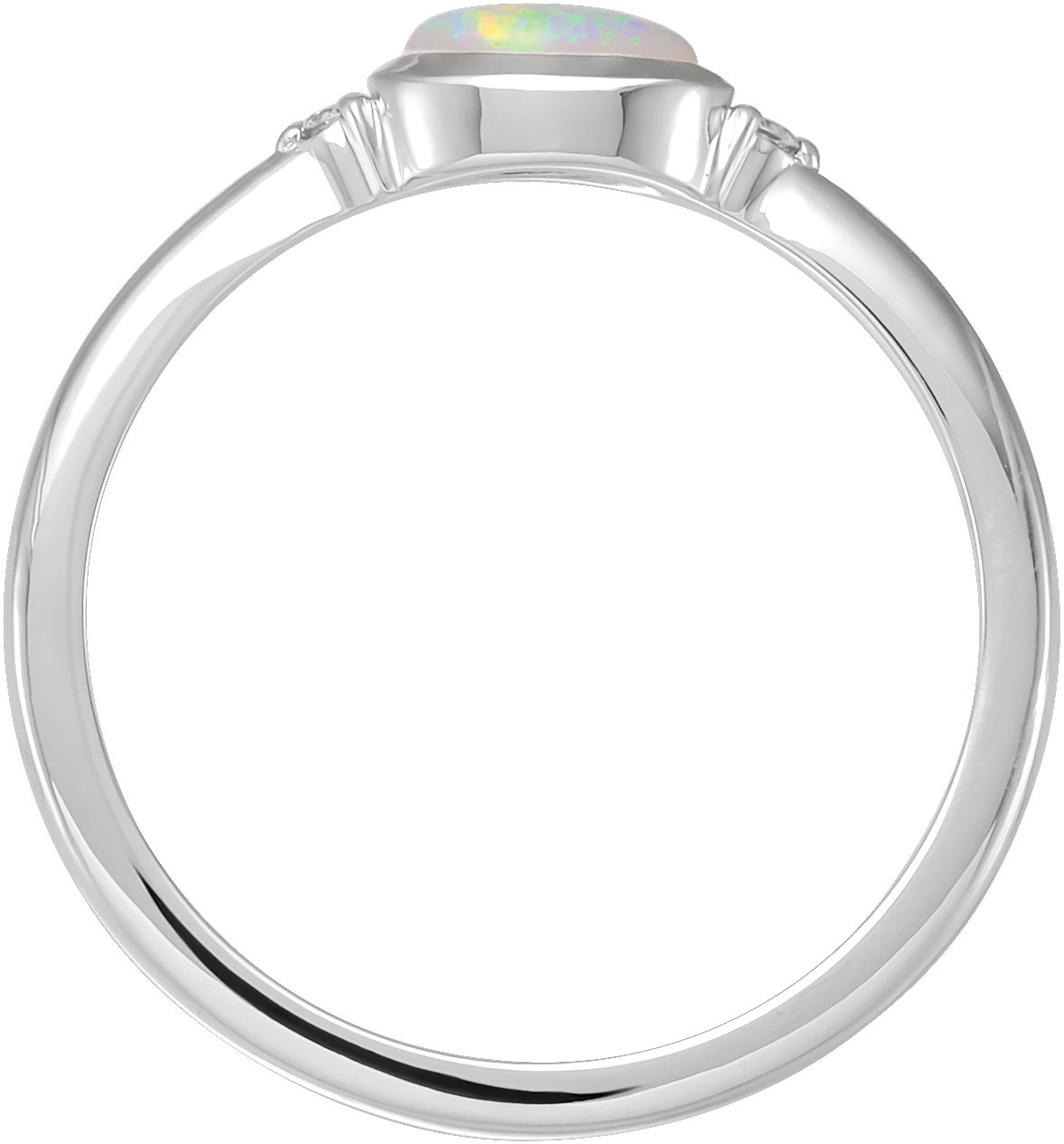 Description: Natural White Ethiopian Opal And .03 CTW Natural Diamond Bezel-Set Cabochon Ring
