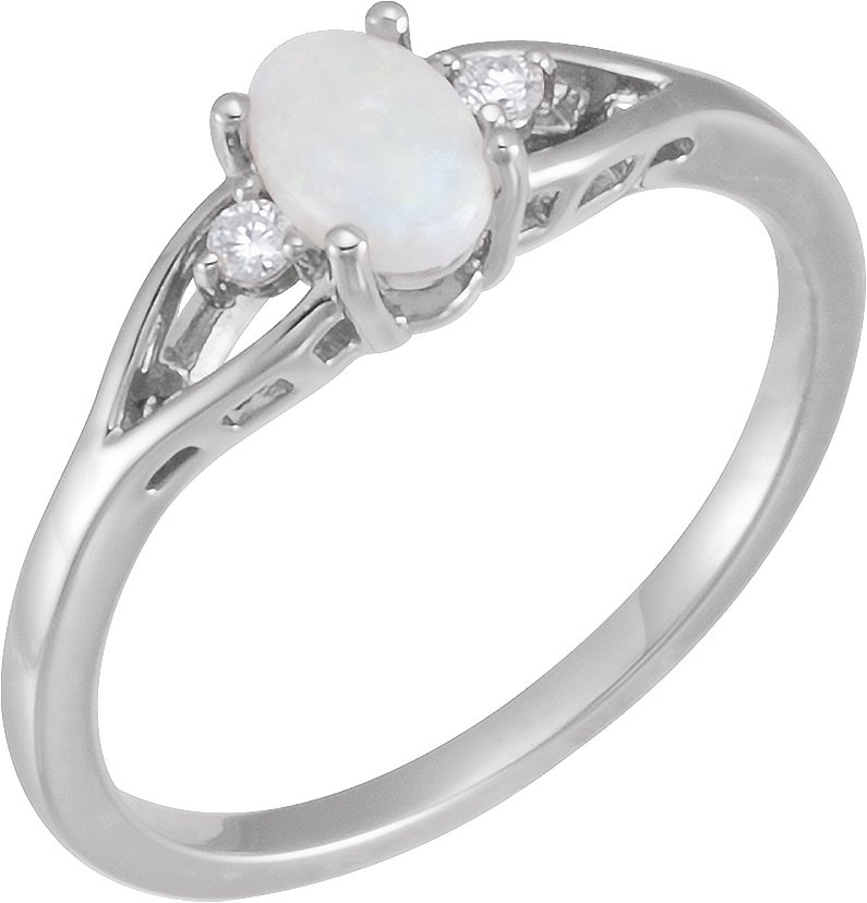 Description: Genuine White Opal And .04 Ctw Diamond Ring
