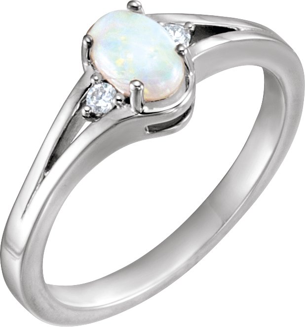 Sterling Silver Opal & .04 CTW Diamond Ring
