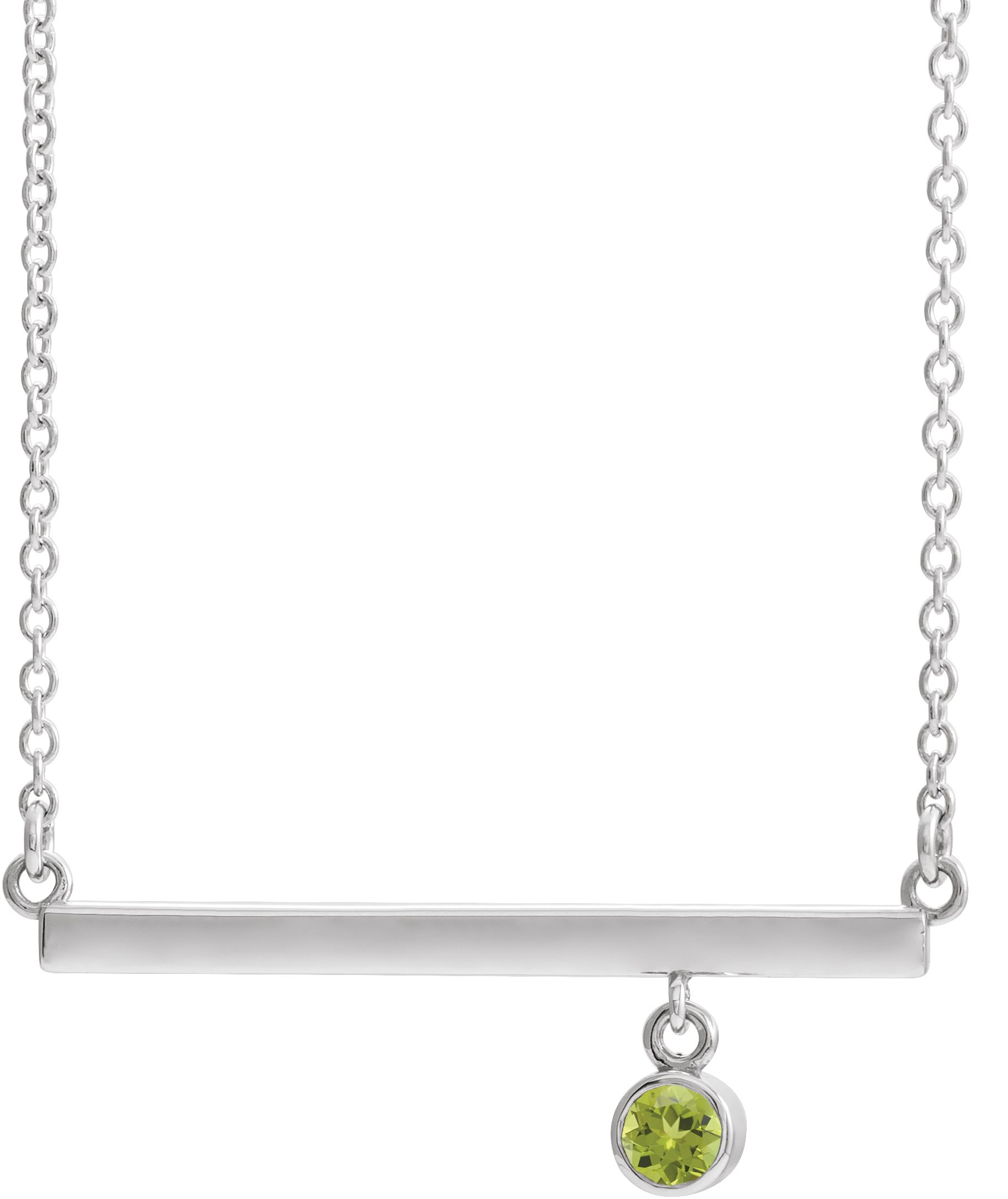 Sterling Silver Peridot Bezel Set 16 inch Bar Necklace