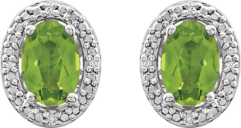Sterling Silver Peridot & .025 CTW Diamond Earrings