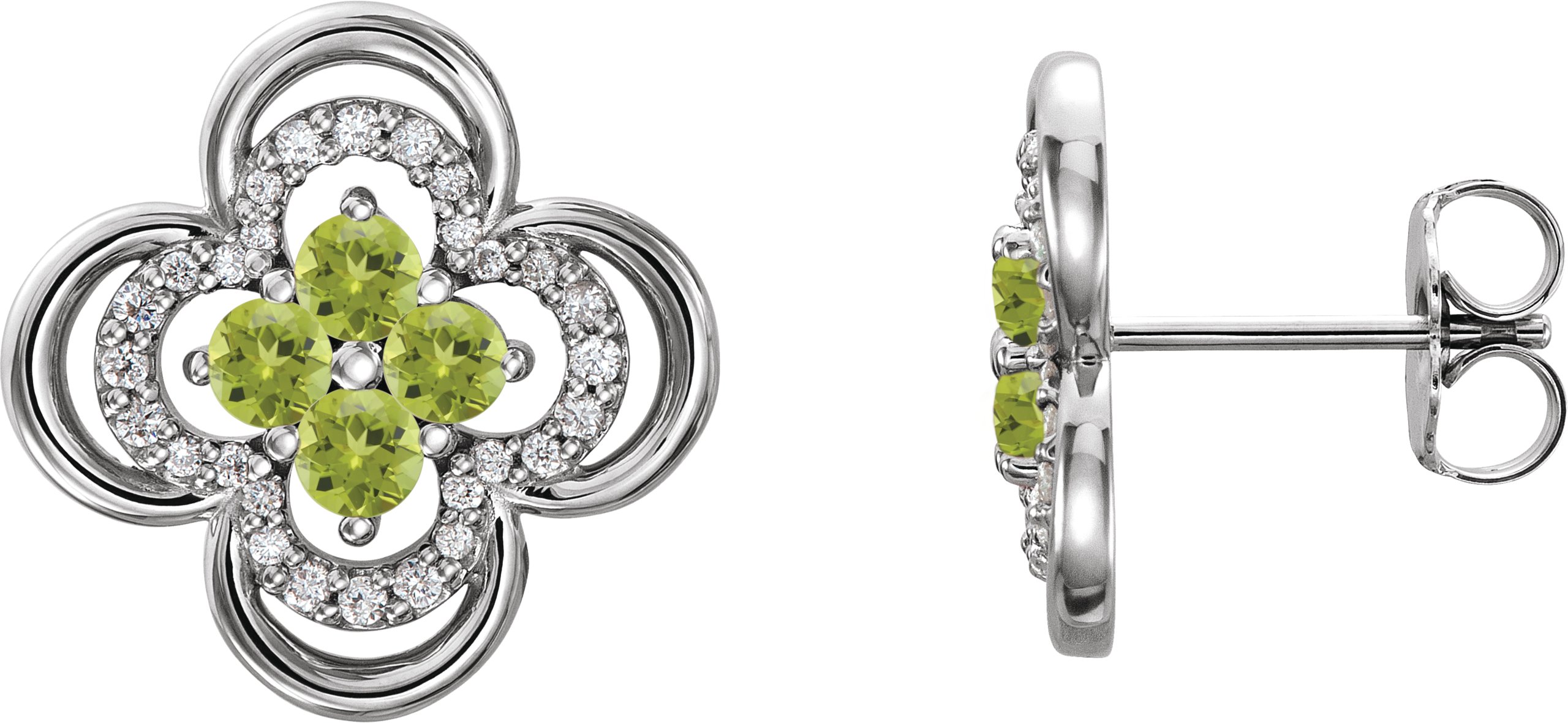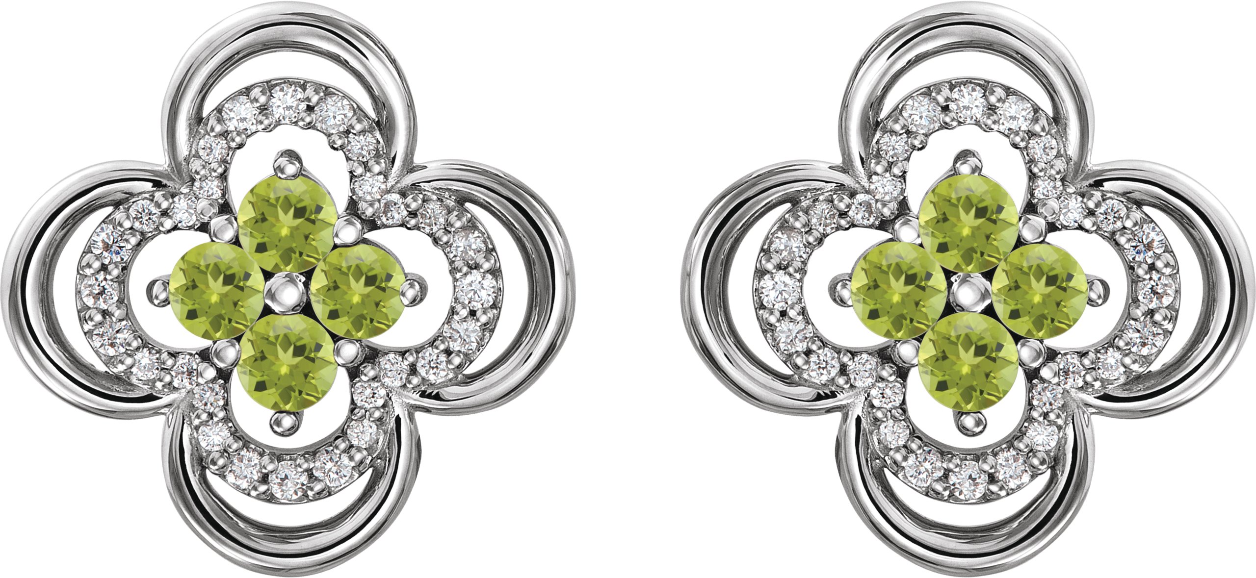 Sterling Silver Peridot & 1/5 CTW Diamond Clover Earrings
