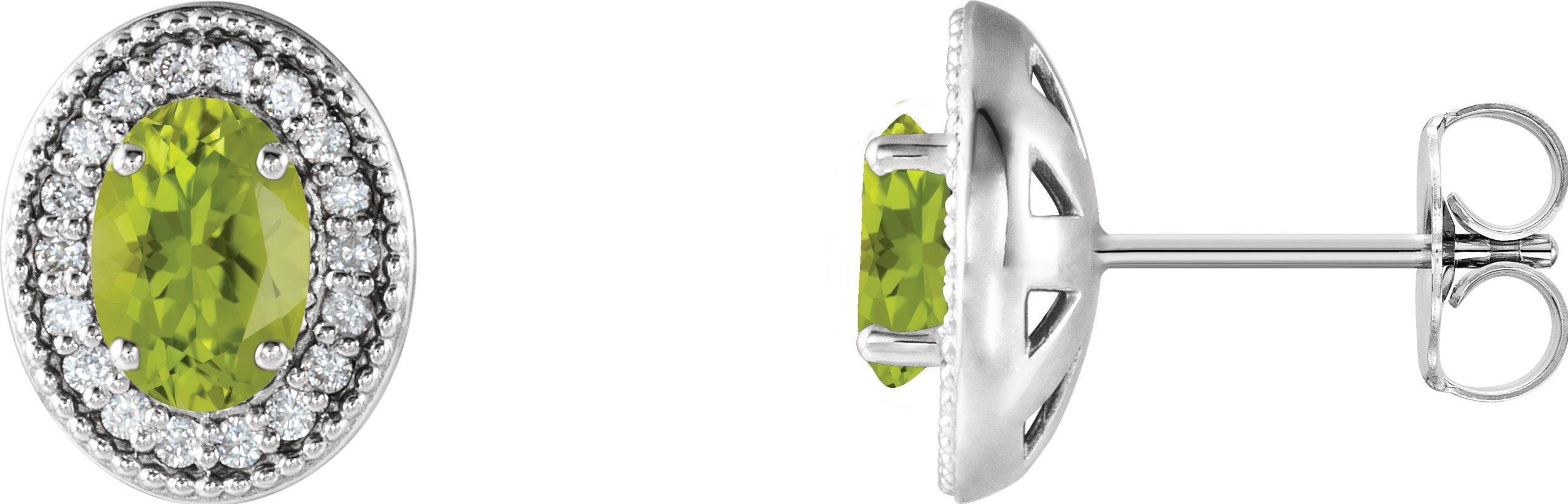 Description: Genuine Peridot And 1/5 Ctw Diamond Earrings With Backs
