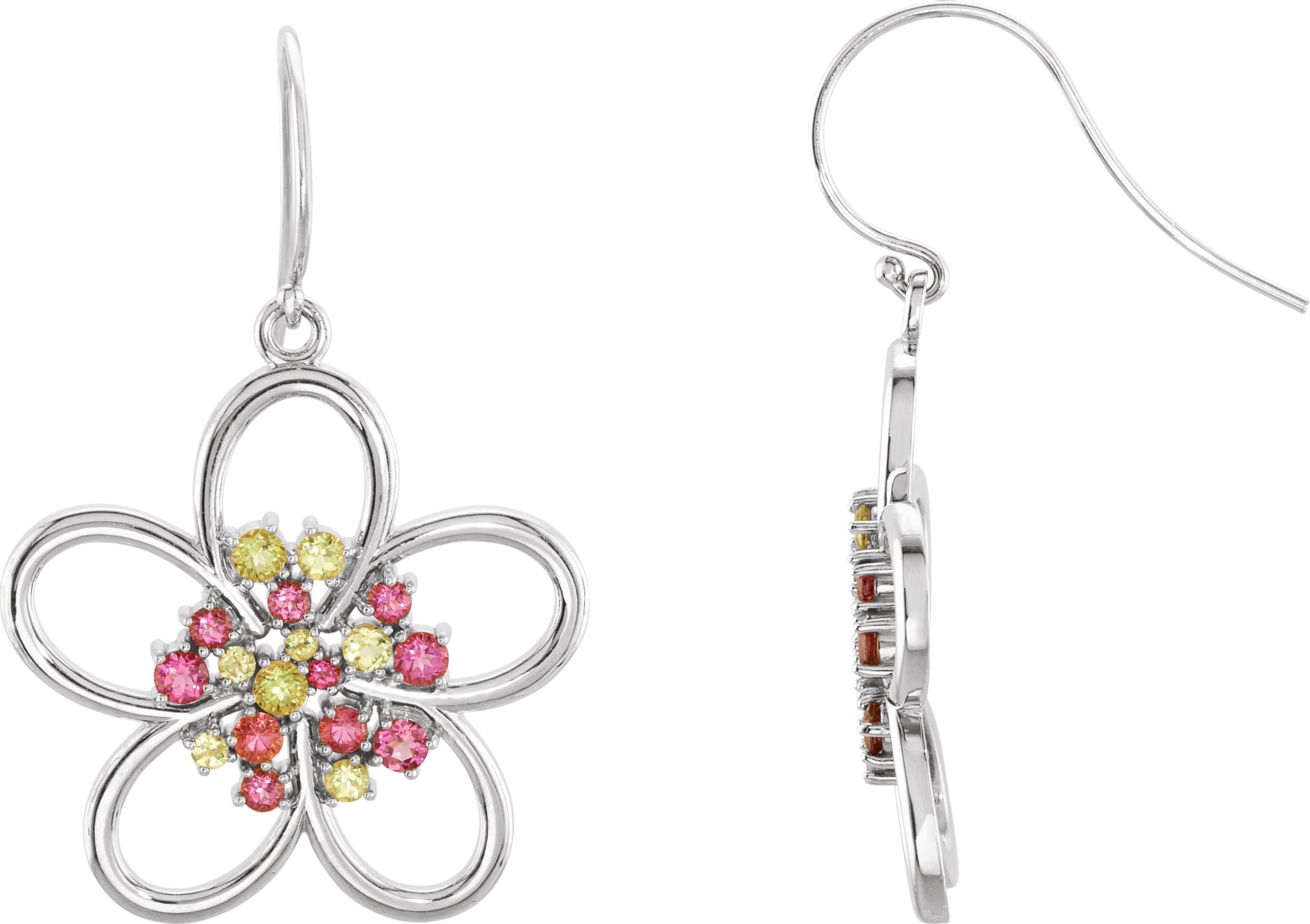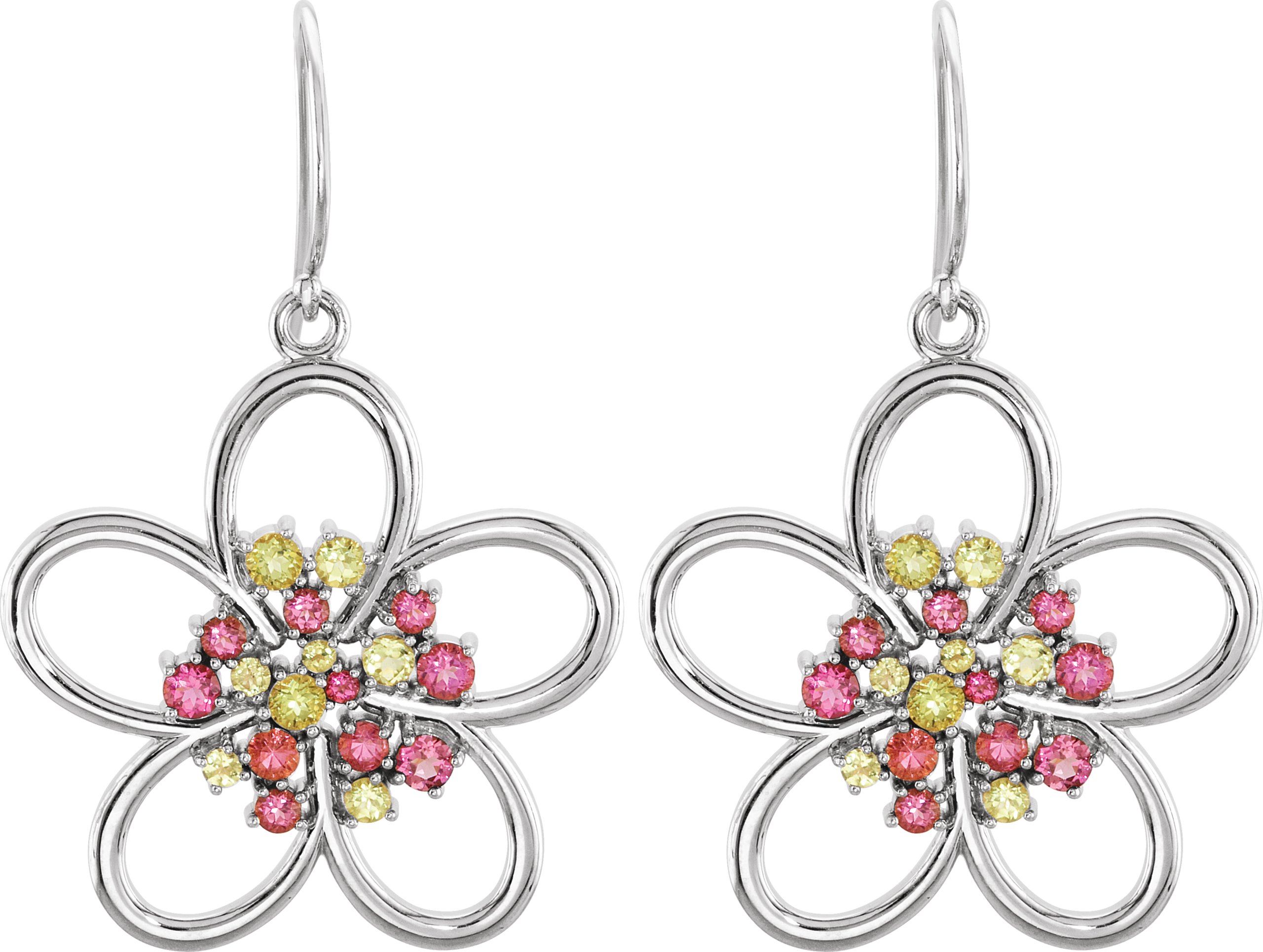 Sterling Silver Peridot and Pink Tourmaline Flower Earrings