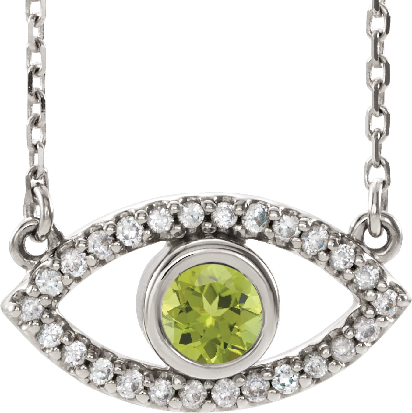 Sterling Silver Peridot & White Sapphire Evil Eye 16" Necklace Ref. 14866500