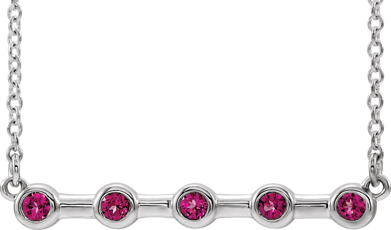 Sterling Silver Pink Tourmaline Bezel Set Bar 18 inch Necklace