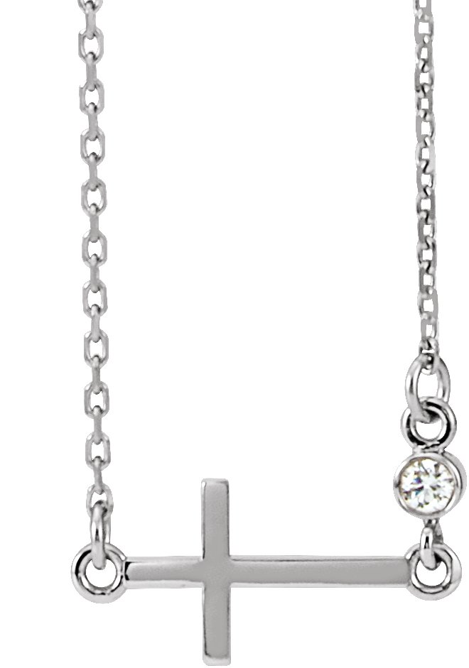 Sterling Silver Pink Tourmaline Sideways Accented Cross 16 18" Necklace Ref. 13269686