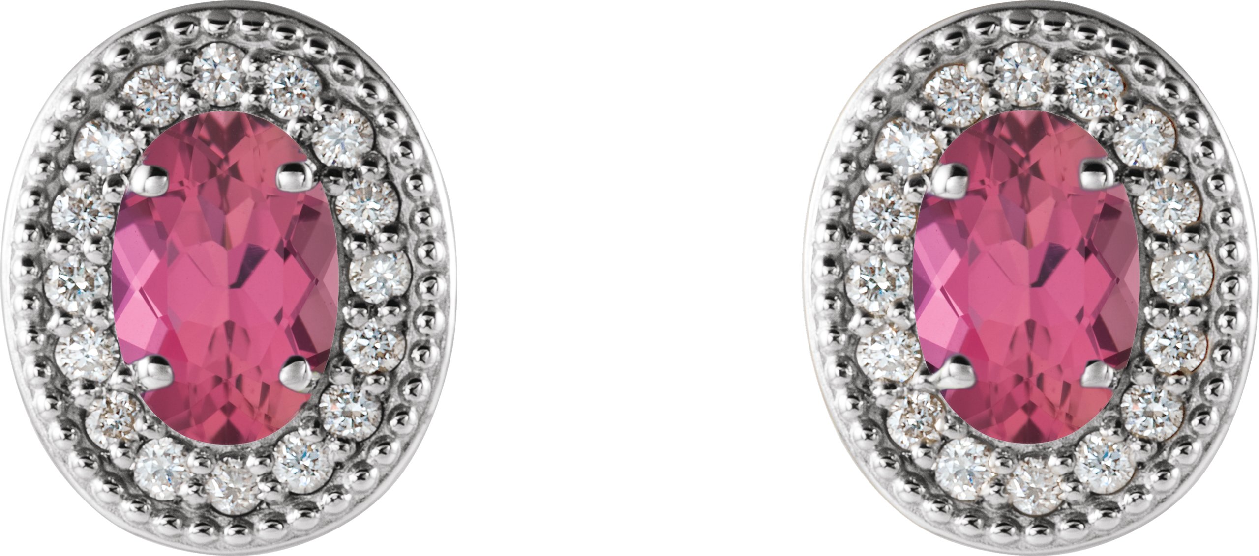 Sterling Silver Pink Tourmaline & 1/5 CTW Diamond Halo Style Earrings