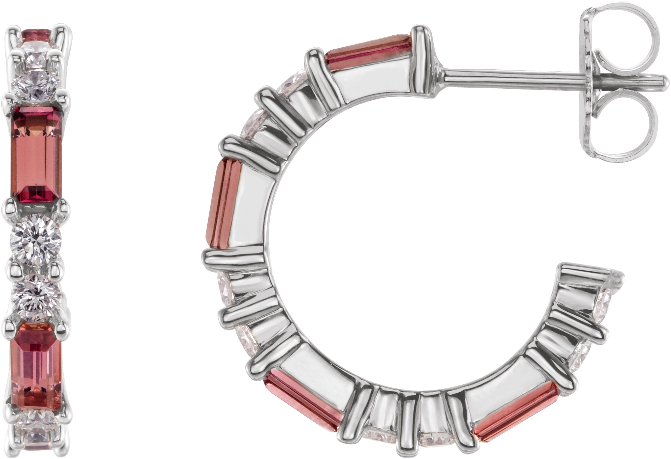 Description: Genuine Pink Tourmaline And 1/2 Ctw Diamond Earrings